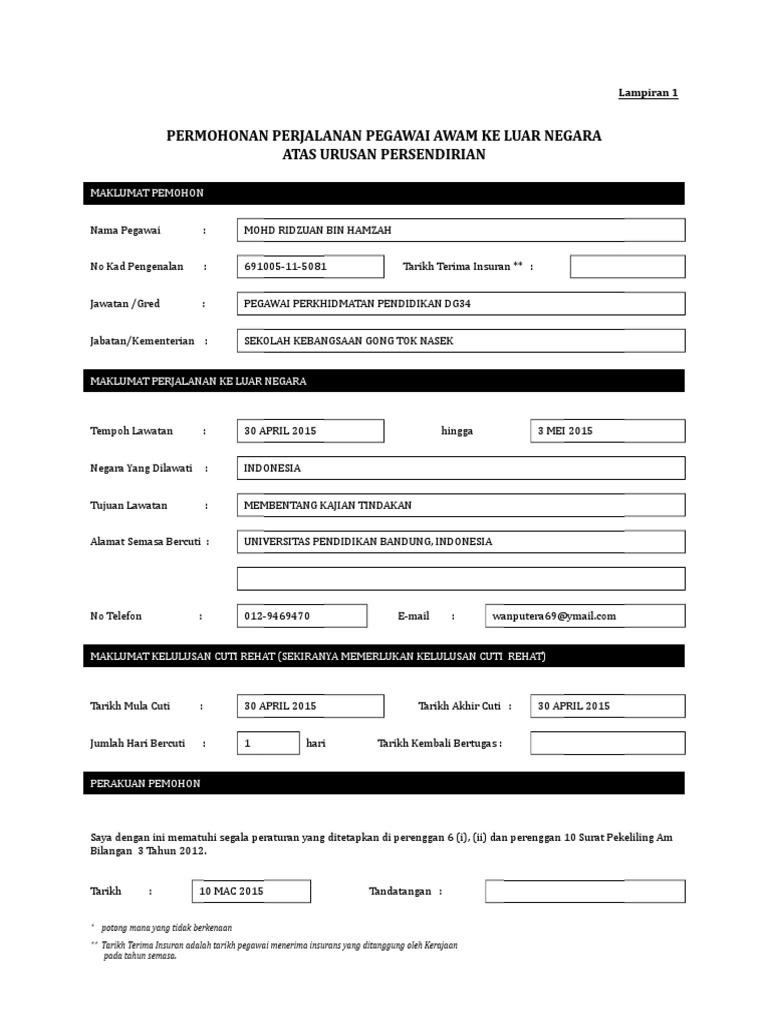 Related : Borang Permohonan Keluar Negara - Permohonan perjalanan keluar negara dan insuran 1..