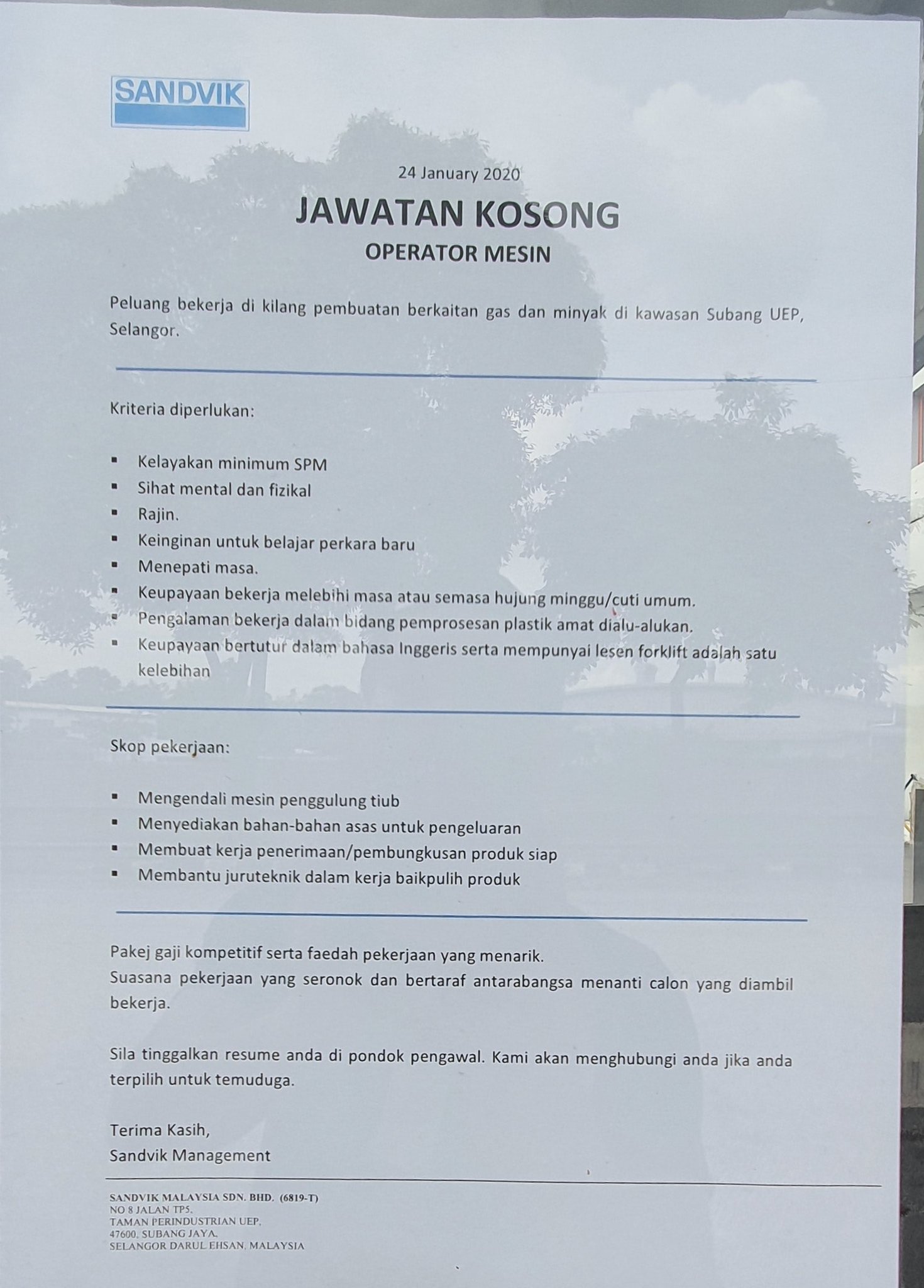 Untuk makluman, iklan jawatan kosong terkini dibawah adalah seperti yang diiklankan oleh majikan.