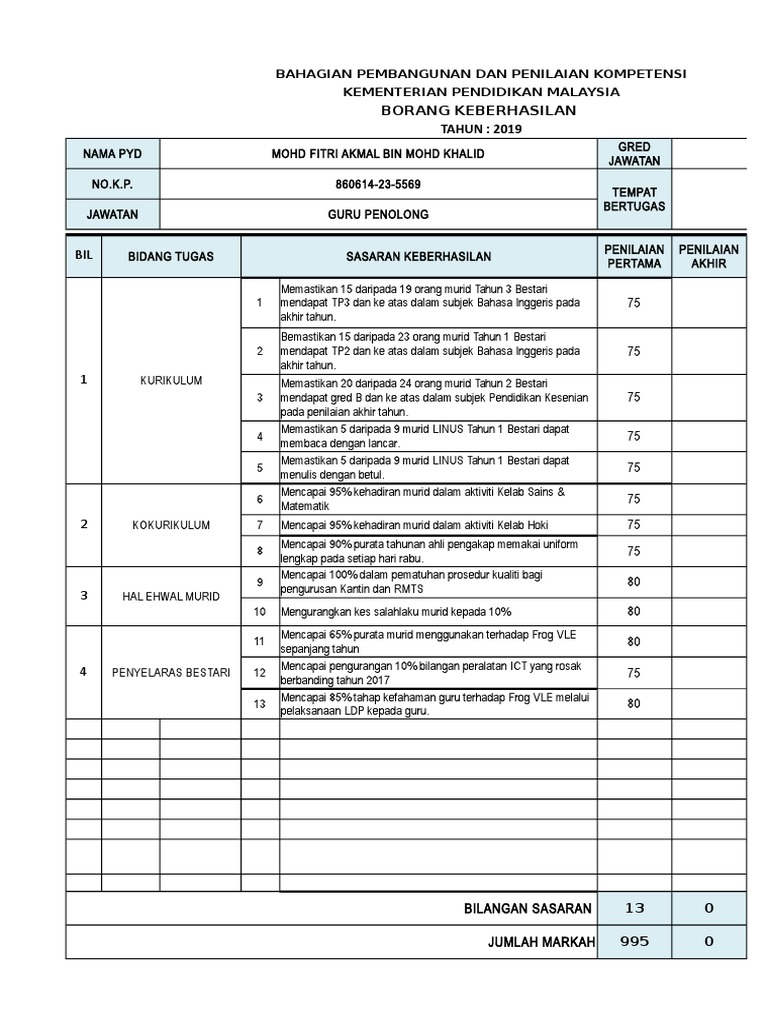 Kt = 26, s=71 , ks = 74 dan skor guru ialah 4 kerana perbezaan s dan ks melebihi 3%. Savesave borang keberhasilan guru besar 2019 for later. Bahagian pembangunan dan penilaian kompetensi kementerian pendidikan malaysia borang keberhasilan 2016 penilaian: 3 memastikan semua guru yang dilantik untuk melaksanakan pencerapan pdp menyelesaikan pencerapan. Borang keberhasilan ini bolehlah dikatakan sebagai satu borang yang mengandungi kpi key performance index ataupun indeks penunjuk prestasi yang mahu dicapai oleh guru pada tahun tersebut.